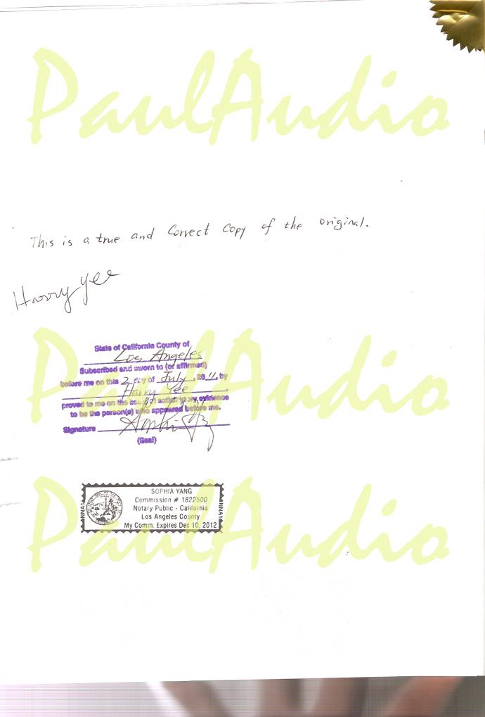 中国驻美国总领馆认证美国C-MARK公司合法转让给美国Paul Audio公司
